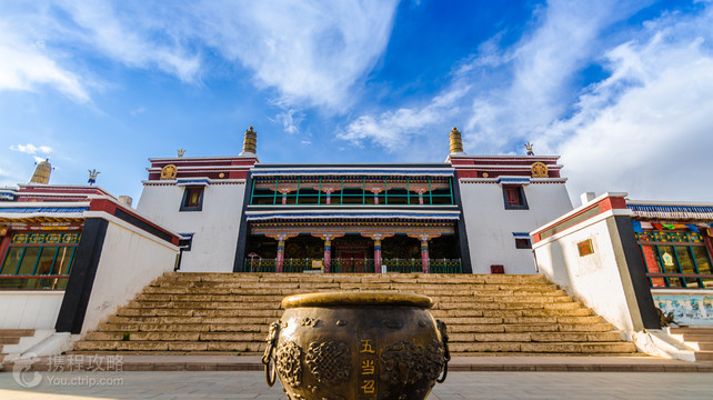 五当召潜藏在包头市连绵起伏的大青山深处,一幢层层依山垒砌的白色建筑,群山环绕,为苍松翠柏掩映,雄浑壮观。创建于清康熙年间,是内蒙古较大的藏传佛教格鲁派寺院。与西藏的布达拉宫、青海的塔尔寺和甘肃的拉卜楞寺并称为中国喇嘛教的四大名寺。是典型的藏传佛教寺院的风格,没有统一的中轴线,所有的大殿都不规则地散布在山谷中,没有围墙和院落,各建筑自成一体。各大殿的顶部还有风磨铜羚羊对卧法轮和寺徽,金光璀璨,周边群山松柏、经幡飘舞,显得格外壮观。的主体建筑,以八大经堂(现存六座)、三座活佛邸和一幢安放本召历世活佛舍利塔的灵堂组成,游客在景区内可以步行游览各个主体建筑。苏古沁殿,是内较大的建筑物,位于寺院前部,高三层。一楼前大厅是经堂,这里有八十根方柱,上面雕刻和彩绘着各式花纹图案。经堂的四壁绘满了释迦牟尼佛传故事和各种护法神像。二楼回廊处绘有“九大佛寺建筑”鸟瞰壁画很是珍贵,你一定不能错过。每天早晨,各殿喇嘛都来此殿诵读早经——满迦经。修建较早的殿宇是,高居于全寺之中,其他建筑均以这里为中心,乾隆皇帝于1756年赐名“”,用满、汉、蒙、藏四种文字雕刻的牌匾悬挂在殿门正中门楣上。这里是学习佛教时轮学部,讲授天文、历法、数学、预测未来、推算藏历日期。殿前广场是讲经、辩经的场所,即学术升级的考场。在金科殿的二楼是文物博物馆,展出了所保存的部分珍贵文物。你可以观赏到唐卡、清代景德镇瓷器、活佛的生活用品、法器、内蒙古仅有的两座鎏金曼荼罗坛城。其余各殿也各有特点,有的殿内立有高达十米的释迦牟尼铜像;有的大殿内供奉着高达九米的黄教始祖宗喀巴大师的铜像,有的殿内供有塑面目狰狞的护法金刚像,或者供奉白度母和绿度母塑像等。这里的庙会是每年农历七月二十五至八月初一举行,全寺的喇嘛在念“嘛呢经”;傍晚喇嘛们手持经轮,吹着法号,敲着羊皮鼓绕寺庙而行。庙会活动五花八门,跳鬼是其主要活动之一,感兴趣的千万不要错过。部分殿宇因为临时或者其他情况会关闭不对外开放,具体以当日景区公告为主。地处偏僻,周边的服务设施不是很完善,住宿和饮食条件一般,多数游客会选择当日返回包头市区住宿。