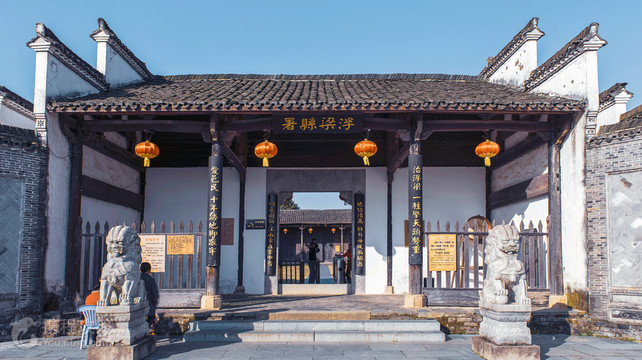 浮梁古县衙景区位于景德镇北部,距离市区大约8公里,是江南保存较完整的清代五品县衙。在这里不仅可以看到齐全的县衙机构,还有真人上演类似古装剧中”公堂断案“的桥段,挺有意思的。 走过景区门口刻着“浮梁”二字的牌坊,只见开阔的广场上一条笔直的瓷板路直通前方的城门,远远看去很是壮观。低头看,你会发现地上长达几百米的瓷板上用图文介绍了浮梁和景德镇的悠久历史,包括城市的演变、陶瓷的发展史、重要任务和大事记等等。一路走来,不仅不会觉得闷,而且能对当地的历史文化有个大致的了解。登上城墙,从高处往下看,视野更是开阔。 顺着甬道走过一片徽派小商铺,大约500米遇到岔道口,往右50米可去到红塔,往前150米便是古县衙。往县衙方向走,首先看到的是头门,里面放置着一个大鼓,是告状人击鼓鸣冤之处,后面的仪门是迎接文武官员的地方。仪门和前方的大堂之间是六部房,分别为“兵刑工吏户礼”,文武分列两边,正向大堂。 所谓大堂就是古装剧中经常看到的“公堂”,是县官举办重大典礼、审理案件的地方。大堂正上方悬着“明镜高悬”的匾额,两边立着“回避”、“肃静”,设施一应俱全。县官的审案台游人是可以坐上去的,那感觉就像自己真做了一回县官一般。另外值得一提的是,大堂每天会有4场升堂表演(10:00、11:00、14:00和15:30,供参考),上演类似小偷偷盗陶瓷之类的断案情节,县官威风凛凛,挺逼真的。升堂表演到时前往观看即可,无需另外付费。 大堂后面的中轴线上是二堂和三堂,分别是侍从的休息室和县官会客、吃饭的地方,穿过三堂后面的后花园,旁边还有一个香山别墅。白居易年轻时曾寓居浮梁,后来写《琵琶行》时,一句“商人重利轻别离,前月浮梁买茶去”脍炙人口,这别墅就是为了纪念他而修建的。里面有很多对联,值得细细揣摩,还有一个茶室,可以小憩一下。 浮梁古县衙景区的中轴线两侧对称分布着军粮库、校场、膳房、牢房等机构,很是齐全。一路走来,可以了解许多古代县衙机构的设置和作用。其中,校场内有一射箭场,可以玩玩射箭(需另付费,大约10元5支箭)。 至于县衙右边的红塔,它是一座九层的古塔,大概是景区中看上去是较古老的建筑了,感觉旧旧的。不过很可能只能在一层看看,不能登塔,去拍拍外观就好。