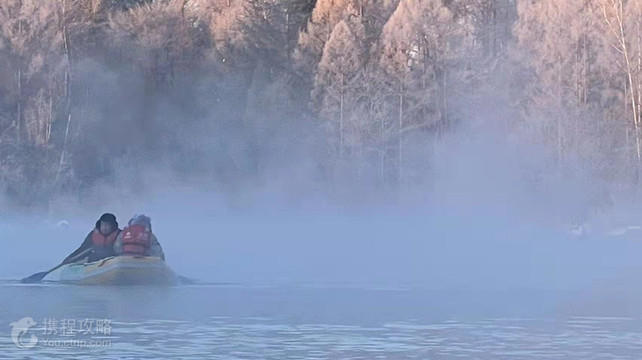 长白山水色漂流:早上看日出,玩漂流,赏雾凇。 站在野鸭湖上面看日出,是壮观的奇景之一,黎明时分,您站在观景台上面举目远眺东方,一线晨曦由灰暗变成淡黄,又有淡黄色变成橘红。而天空的云朵红紫交辉瞬息万变,漫天的彩霞,与地平线上的茫茫雾松林海融为一体,扰如巨幅油画从天而降。 零下二三十度的情况下,河水依然不结冰,这就是长白山神奇的水,冬天热,夏天凉,坐在皮筏艇上面,您的头发和睫毛上结满了晶莹剔透的水晶片。 水面上雾气缭绕,如梦如幻,整个岛都结满闪着银光晶莹剔透的雾凇,您身在其中,被画面包裹的感觉,浪漫唯美。 在银装素裹的雾松林海之中看日出,玩冬漂,赏雾松令您流连忘返、意犹未尽、美不胜收。