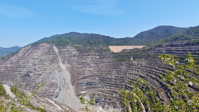 黄石国家矿山公园位于湖北省黄石市。这里有着悠久的历史,三国孙权在此“筑炉炼兵器”;清末湖广总督张之洞办洋务、兴钢铁,在此建成中国较早的一家用机器开采的大型露天铁矿,成为汉阳铁厂的原料基地。历经百年开采,铁矿东露天采场形成了落差444米的高陡边坡,现在成为黄石国家矿山公园核心景观。 矿冶大峡谷形如一只硕大的倒葫芦,东西长2200米、南北宽550米、较大落差444米、坑口面积达108万平方米。在铁山张之洞广场旁,有全国首座铁矿博物馆,馆内收藏史料10余万字,图片1600余幅,文物80余件,见证了千年矿山的创业史和发展史。