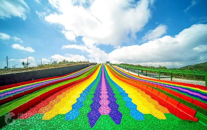温岭山海之韵位于温岭市松门镇海韵新村,游乐园内包含多种网红项目:可以赏海景的“7D”玻璃桥,惊险刺激的高空秋千,必不可少的网红七彩滑道,离入口处不远,还有一个网绳娱乐区,整个攀爬游乐网笼占地面积近1200平方米,长90米,宽15米,除了儿童,成年人也能到这一大型网笼里撒欢一番。