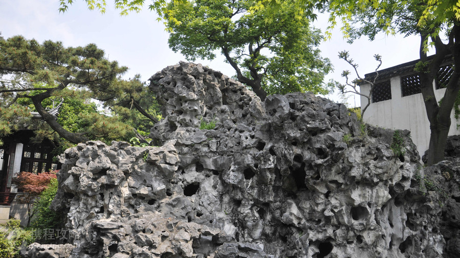 环秀山庄又名颐园,位于刺绣博物馆内,是以假山为主的一处古典园林。以山为主,池水辅之,建筑不多。园虽小,却极有气势。布局上设计巧妙得宜,湖山、池水、树木、建筑,得以融为一体;假山一座、池水一湾,更是独出心裁。 假山:山庄被列为苏州名园主要是因其假山。园内的湖石假山是清乾隆时叠山名家戈裕良所建,戈氏叠山堪称一绝,占地不过半亩,然咫尺之间,千岩万壑,环山而视,步移景易,有“独步江南”之誉。 假山面积占全园之三分之一,位置偏向园之东,其尾部伸向东北方向。山有危径、洞穴、幽谷、石崖、飞梁、绝壁,境界多变,一如天然。其主峰突兀于东南,次峰拱揖于西北,池水缭绕于两山之间,使人有在一畴平川之内,忽地一峰突起,耸峙于原野之上的感觉。 主山分前后两部分,其间有幽谷,荫山全用叠石构成,外形峭壁峰峦,内构为洞,后山临池水部分为湖石石壁,与前山之间留有仅一米左右的距离内,构成洞谷,谷高5米左右。主峰高7.2米,涧谷约12米,山径长60余米,盘旋上下。 飞雪泉:苏州园林中的一处名泉。此泉为清朝乾隆年间,刑部员外郎蒋楫(字济川)购得环秀山庄重修,掘地而成,水质优美,蒋楫以苏东坡试院煎茶诗中“蒙茸出磨细珠落,眩转绕瓯飞雪轻”的意思题名为“飞雪泉”。现在园内西面的秋山,可见临池石壁上刻有“飞雪”两个字。 飞雪泉年久淤塞,现存遗址,后人巧用其地作为大假山山涧的源头。山涧中有险巧步石,雨后瀑布奔流而下,进入池中和主山山腹。石壁占地很少,却洞壑涧崖毕备,构筑自成一体,与主山一主一从,一正一副,极富神韵,壁间有蹬道和边楼相通。从楼上循山岩而下,可直抵水边,路径极其险峻,妙的是在岩壁合适的位置上都设有扶手石,安排得恰到好处,自然而又不留痕迹,不能不令人惊叹造园家非凡的匠心。山道尽头临水石矶随水波隐现,富有自然意趣。 此外,假山后面有小亭,依山临水,旁侧有小崖石潭,借“素湍绿潭,四清倒影”之意,故取名“半潭秋水一房山”。在亭中观山,岩崖若画。周围林木清荫,苍枝虬干,饶有野趣。出亭北,缘石级向下,山溪低流,峰石参差,有路通往园北的“补秋舫”。舫的南面临水。此建筑面阔三间,与池南的大厅遥相呼应。