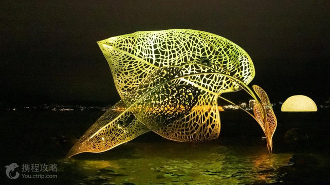 千岛湖“月光之恋”光影艺术夜游位于千岛湖中心湖区月光岛,由“心园、系园、情园、梦园”四座小岛组成,是一个极具浪漫气息和人文底蕴的景区,是一部“赏月、追月,逐梦、圆梦”的夜游盛宴。“月光之恋”包括“主题光影秀”与“国际光影艺术节双年展”两大区块。2024第二届千岛湖国际光影艺术双年展,以“光的姿态”为主题。此次双年展,不仅仅考虑到艺术形态,更加倾向于关注当下消费者尤其年轻人的消费需求,融入了较强旅游属性,较一届双年展更具科技感、情怀和交互性,注重游客口碑。二届双年展在来自全球8个国家215件作品中,精选11件作品在月光岛呈现,崔健老师的作品“外面的妞” 、湖光宙合很具科技感,回溯、镜花缘、乘风破浪、千岛与湖的对白、逍遥游、山水鸟鸣作品都具备一定的情怀和交互感。 作品介绍:《回溯》:艺术家纪思钰作品,位于锁展馆沙湾,形似碟片,色彩斑斓,有历史感与情怀;游客可通过岸上的交互装置控制光线流动,内外分四层,由四个按钮控制,每一层对应一首老歌,不停于过去、不惮于现状、不惑于未来。《光年传输》:以色列/中国艺术家齐夫·泽夫·科恩、李⼼夷作品,位于放肆咖啡上侧通道两侧。作品从千百年来描写淳安县的古诗词中汲取灵感,通过操控光和感光材料,⽤现代科技对诗词进⾏解码,来呈现我们对古诗的新解读。《湖光宙合》:艺术家胡沂佳作品,位于鱼乐桥,作品创作灵感来自于《管子·宙合》:“天地,万物之橐,宙合,有橐天地。”整体造型以万向轴的特殊构造,使得中心发光体旋转任意角度,都能保持平衡与稳定。游客通过陀螺仪的交互,体验湖光黑洞空间的光影虚实幻象。《外面的妞》:中国摇滚之父、艺术家崔健作品,位于幸运桥,极具科技感,飞碟造型,感受未知,感受奇遇。《时光之勾》:艺术家刘舸帆作品,位于幸运桥,穿破云层的时光之勾,勾中人间琐事,勾起回忆,游客可打卡留念,有愿者上钩的寓意。《千岛与湖的对白》:艺术家李靖康作品,位于幸运桥,一条语音发送给湖面,湖面给予一条回复,是千岛湖为世人答惑解疑。《舞动的叶子》:保加利亚艺术家米哈埃拉·卡梅诺娃作品,位于幸运桥,充满活力和诗意,作品以三片截然不同的叶子为特色,每片叶子都代表着不同的降落阶段,可通过互动变色。《逍遥游》:艺术家刘佳婧、刘子槐作品,位于幸运桥,浮于水面的偏振光片,透过岸上设置的观景窗或水面倒影,观众才能看到偏振光片所携带的信息。《镜花缘》:艺术家陈惠松作品,位于幸运桥中,红花元素契合爱情与状元主题。花瓣层叠,与水中的倒影形成一朵完整的鲜花。花朵中央的激光灯,犹如花蕊般挺立。平台上的月镜控制台通过手指拨动光线,调节花朵中的紫光灯照射,令喷涂了夜光漆的湖中花朵发生变色。《山水鸟鸣》:艺术家武定宇、邢奇、李尊豪、赵亮、王瑞珠作品,位于幸运桥,将光影与自然两大元素巧妙融合,通过吹鸟笛产生声普触发光影变化,仿佛与真实的鸟叫声形成了呼应。《乘风破浪》:艺术家李娜作品,位于幸运桥尾,在幸运桥设置两辆独轮车,只需登骑,便能激活湖中设置的喷水装置,仿佛在湖面上乘风破浪。