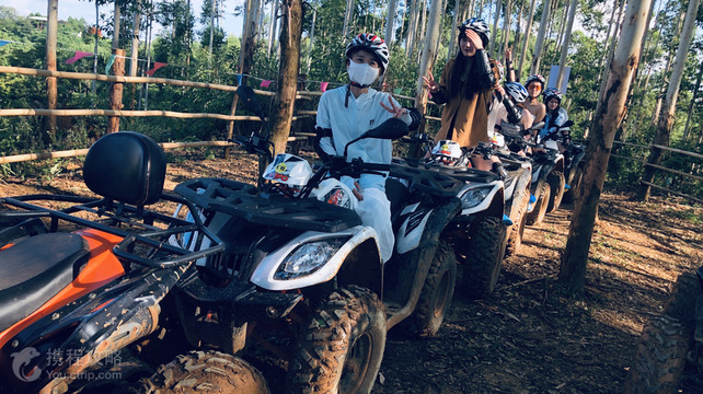 南宁大型ATV山地越野游乐项目——星途越野,是南宁团建拓展聚会活动场地的理想选择。跟着教练头车带队进山,游客穿戴护具自行驾驶ATV全地形越野车穿越8公里丛林山地,全程单向行驶不走回头路,游玩需要40分钟左右,近距离欣赏大自然奇妙风光,惊险刺激,有趣解压又好玩。