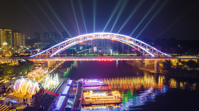 景点地址:四川省自贡市大安区汇兴路一号桥夜游釜溪1号码头