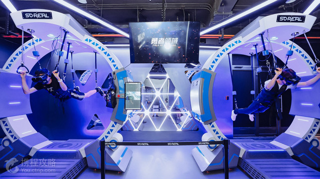 上海迪士尼小镇超体空间SoReal VR是由【北京当红齐天集团】创新打造,以西游“齐天大圣”为主题IP的大型5G+XR沉浸式虚拟现实XR场馆,也是全球首座在迪士尼园区内运营的大型XR场馆项目。该项目作为集团旗下虚拟现实领先品牌SoReal在2022年主推的新游乐综合体,以5G边缘计算做为技术支撑,整合多款自主研发的XR载具产品,并重磅打造以“齐天大圣诞生,纵览世间百态,顿悟成佛”为核心的科技艺术光影秀。以西游“齐天大圣”为IP贯穿体验全程,共分上下两层西游降魔-起源之战大空间可自由行走沉浸式互动闯关游戏。戴上VR头显,化身为神话人物,在齐天大圣的引领下,通过八卦门进入西游降魔世界,配合风感、水幕等各种体感装置,场景梦幻,五感沉浸体验!《西游记》中的经典场景,深入感受经典故事蕴含的意境和理念。 天宫竞技场-量⼦冲突大空间VR人机对战游戏,4个玩家组成2个战队,通过沟通配合、奔跑躲避,进行对战,限时时间内击杀对方次数最多的战队获得胜利,玩家不再需要背负沉重的电脑背包,只需戴上轻便的VR头显就以轻松探索无界虚拟世界。天宫竞技场-跳跳堂“西游跳跳堂”是一款西游主题的多人对战休闲运动类游戏,玩家将化身为唐僧、孙悟空、猪八戒、沙和尚,在花果山的竞技平台上(15层)不断移动,合理使用“大圣技能”,减缓自己下落的速度,最后一个到达竞技平台底层的玩家将获得最终的胜利。是一款将科技、运动及跳跳堂游戏相结合的VR项目。⻬天幻境一款双人互动闯关游戏,坐上座椅戴上头显,玩家将置身于西游盘丝洞里,和同伴协助齐天大圣一起闯过重重关卡,最终救出师傅唐僧。座椅还会根据游戏场景进行前后45°倾斜、左右旋转,实现沉浸式观影娱乐体验。奇境历险记西游主题的沉浸式VR骑马项目,带上VR头显,玩家将在西游天宫里进行骑马竞速体验,马身配备相应体感动作,高度模拟了骑马时的感觉,多人可联机。疾速空间西游主题的VR摩托车驾驶模拟器,带上VR设备,玩家将进入火焰山进行摩托竞速,设备高精度还原驾驶摩托车时的感觉,可以左右大幅度倾斜,支持弯道压弯等动作,驾驶摩托勇闯西游世界,探寻芭蕉扇的下落!飓风惊航佩戴VR头显,搭乘360°穿梭飞船,让玩家可以穿越宇宙平行空间,探索陨石隧道、地底世界、机械世界等,非常的刺激与新奇。设备会根据观影内容进行旋转及倾斜,并加上风的体感,摆脱了场地的束缚,逼真的模拟出乘坐过山车的感受。竞速空间“竞速空间”是一款VR卡丁车驾驶模拟器,虚拟赛道有6个不同的场景,并提供各类攻击、防护、加速道具,游戏中还设置了火焰、龙卷风等种种障碍物,车辆会根据玩家的驾驶情况配备不同的动作,加速的推背感,撞到路障后的撞击感都特别真实,可以让玩家身临其境的感受赛车的速度与激情,是一场极限速度的较量。勇者领域“勇者领域”是一款VR跳伞模拟体验项目,飞翔在万米高空,自由操控飞行方向,感受身体的抬升、下降和左右偏转,一场惊险刺激的极限试炼之旅,等你来挑战!齐天大圣超影空间这是一场沉浸式艺术空间光影秀,通过绚丽、自由的视听表现与实时互动,创造出4种空间状态的转化,以别具一格的艺术表达形式呈现齐天大圣由诞生到顿悟的过程。3D扫描、三维全息影像、雷达互动等前沿技术的运用,带给观众视觉盛宴的同时,也让大家充分领略到科技带来的诸多妙趣。