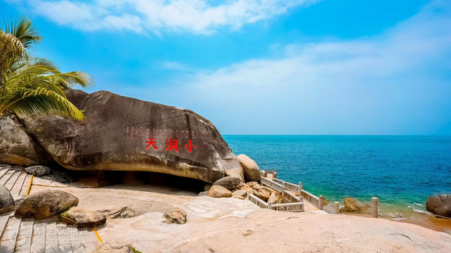 大小洞天旅游区位于三亚市以西40公里处,总面积为22.5平方公里,是国家5A级旅游景区。“琼崖八百年山水名胜”,誉满天下! 大小洞天开发始于南宋(公元1187年),为海南省历史悠久的风景名胜,我国南端的道家文化旅游胜地。今天,已经发展成为一个以古崖州文化为脉络,汇聚中国传统道家文化、龙文化,融热带滨海风光、民俗风情、科普教育、户外拓展、颐年摄养、休闲度假于一体的精品化旅游风景区,“南溟奇甸”、“山海奇观”,新姿绽放,时尚无限。 天工造化,鳌山云深林翠;人文点缀,南海涛声动情。椰风挑动银浪,夕阳躲云偷看,南海姑娘的歌声里,山高水长,天人合一,相约相聚,流连忘返。 景区拍照元素众多,来过大小洞天的游客必少不了在南海福门、教堂、天梯、玻璃房、灯塔......拍照打卡,快来大小洞天轰炸你的朋友圈吧! 南海福门,曾许地久天长。春夏朝暮,携手共度余生。 灯塔:在海天相接的画面中,不远处海面上,一座灯塔遗世独立,仿佛世界的尽头。 无边泳池:池水倒影着云的影,置身其中,视野一望无际,宛如天空之境。