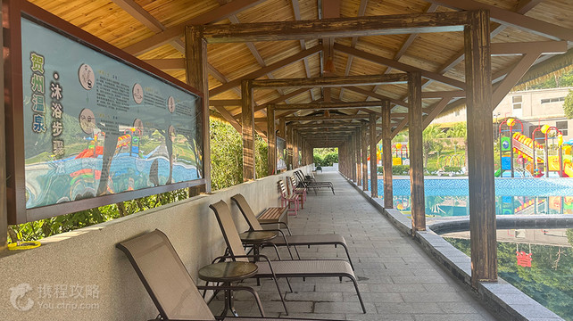贺州温泉毗邻姑婆山和玉石林风景区,这里四面青山环抱,环境清幽,温泉资源十分丰富,许多游客都会选择游玩姑婆山或玉石林之后来这里享受温泉水疗的惬意与舒适。来到温泉区,绿树环绕、水雾缭绕之景便迎面而来,除了露天池区,这里还设有独立的木屋院落小池,可让客人尽情享受私密空间。景区也不乏养生泡池,如温泉鱼疗、金银花藤浴、薄荷浴、艾叶浴等。多种类型的住宿客房和经营美味的温泉餐厅,使得这里成为了贺州的休闲度假胜地之一。