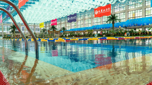 九龙山温泉占地35000平方米,是一座集温泉休闲度假、酒店住宿等于一体的四季温泉酒店度假区。目前主要由:九龙山温泉酒店、室内温泉泡汤区、水上乐园、室外温泉泡汤池四大部分组成。九龙山温泉酒店按照高级酒店标准打造,集温泉、酒店、餐饮、休闲、会议、娱乐为一体。酒店共拥有客房1000余间,可同时容纳2000人住宿。室内温泉泡汤区拥有药汤池、太极池、鱼疗池、 养颜池等特色养及别具一格的汗蒸馆、SPA中心。九龙山水上乐园主要有包括造浪池、游泳池、漂流河等多个独具特色的水上娱乐设施,让你在感受温泉美妙的同时体验不一样的游乐项目。室外温泉泡汤池室外温泉泡汤池中有特色的当属这里的50多座独立温泉院落,北依九龙山,南临潇水河,身临其中,不仅可以欣赏自然美景还能感受温泉水带给我们的丰富多彩温泉体验。
