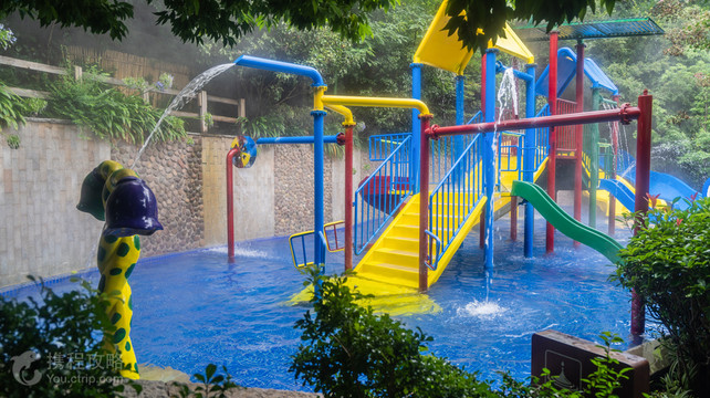 明熙温泉的28个露天森林泡池依山势而建,片片绿茵,曲径通幽,掩映于林间的泡池,环境优美,舒适宜人,设施完备。