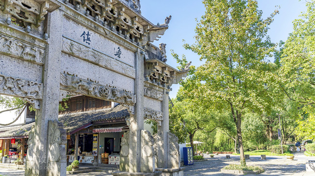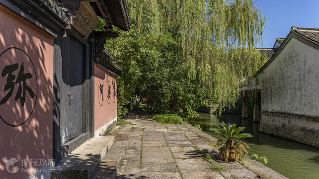 鲁镇位于绍兴柯岩风景区内,是依照鲁迅笔下的“鲁镇”还原的主题公园。在这里你会看到许多熟悉的场景:鲁家祠堂、奎文阁、阿Q栖身的土谷祠等等,可以一路走一路回忆作品中的桥段,是种特别的体验。鲁镇被流水大致分为三部分,景区的入口,迎面是一座高大的石牌坊,上书“鲁镇”二字,一旁是鲁迅先生坐在藤椅上的铜像,颇有“横眉冷对千夫指,俯首甘为孺子牛”的神韵,也是鲁镇的标志。中轴线上是民俗风情街、双面戏台,左手边是赵府、土谷祠、奎文阁,右手边有静修庵、百匾馆、鲁府(鲁家花园)、鲁家祠堂、当铺、钱府(狂人府)等,各部分之间有小桥相连,河道中不时有乌篷船划过,颇有情致。鲁镇不大,顺着标识步行游玩即可。首先来到的是民俗风情街,这里是鲁镇繁华的地方,沿街许多特色小店,卖一些古玩玉器和乌毡帽之类的小玩意,街上还有游客可以参与的“投球入樽”、“套圈”等绍兴特色的游戏,感兴趣可以去玩一玩。风情街尽头是鲁镇的中心,双面戏台,游客可以在这里看社戏、品黄酒(社戏表演时间参考当日戏台附近的公告牌)。戏台往左来到阿Q的栖身之所土谷祠,再往里走便是鲁镇较高的建筑奎文阁,登上楼去,可以俯瞰鲁镇全景。过桥来到钱府,这里按照《狂人日记》里的情节,布置了一个“吃人”而扭曲的环境,尤其是走进蠕洞里,好像走进动物的腔肠内部,有种被封建礼教吞噬的即视感。从钱府开始往景区大门方向走,沿路是当铺、《祝福》中的鲁家花园、阿Q调戏小尼姑的静修庵等等,过静修庵前的石板桥,便出了鲁镇的广场了。除了这些建筑,鲁镇的街上穿着戏服扮演鲁迅笔下角色的演员们也是鲁镇的一道风景,阿Q油腔滑调地装各种怪相,祥林嫂挎着讨饭篮拄着竹竿在街上四处游荡……让人感觉真的穿越进了鲁迅的故事里。游客多时,他们就扮演起自己的角色,念起经典台词来逗游人开心,引得游客纷纷掏出相机拍照。柯岩风景区有柯岩、鲁镇两个入口,可以先游玩鲁镇,乘画舫前往葫芦酒岛,然后去到柯岩景区看天工大佛。或者从柯岩进入景区,沿柯岩-鉴湖-鲁镇游玩。