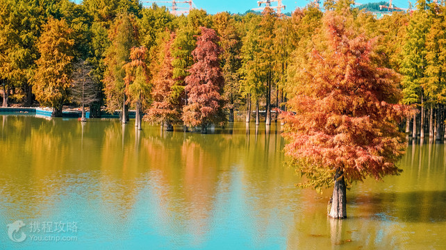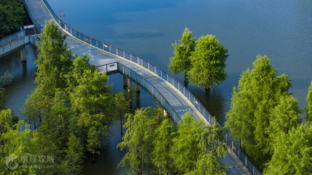 青山湖是位于临安城东四五公里的人工湖,风光清朗,湖面很开阔,并无太多修饰。湖上值得一看的是水上森林,这些奇特的杉树在水中生长,枝繁叶茂。此外,景区内还有烧烤园、小型游乐场,可以玩玩水上降落伞等活动。 怎么玩 游玩的主要方式是坐游船,南面的的琴山码头和圣鹤码头均可购票乘船,同一码头上下。乘游船不仅能欣赏湖面风光,还能游览沿途停靠的水上森林、水上平台等主要景点,上岸游览时间不限,游览结束后凭船票即可继续乘船。 船型有两种,一种是古典画舫游船,另一种为游艇。对于散客来说,明智的选择是等候团队的到来,然后拼船。9:00是琴山码头团队到达的高峰,是拼船成功率较高的时候。其它时段里拼到船的几率也不低,20分钟左右一般都能拼到。 景区看点 乘船到大约40分钟,湖水中水杉林立的高大笔直的树干,是抢眼的景色,也是几乎每个来此的游人都会拍照留影的地方。附近有一个名为“水上森林大闯关”的游乐场,能玩一些诸如水上攀岩、战地滚筒、水上软桥的闯关游戏。另外,湖中间水上平台的一些水上项目值得参与 ,如摩托艇、水上降落伞等,可根据个人喜好参加。 圣鹤码头附近有一块草坪,是一块挺热闹的烧烤园,邻近城市的游客很喜欢在这里烧烤、聚会。这里有出租烧烤炊具、帐篷的摊位,食材也可另付费在此购买。此外,在琴山码头附近的湖面上有座水上舞台,会有小丑、泰国人妖之类的表演(约50元),可前往观看。