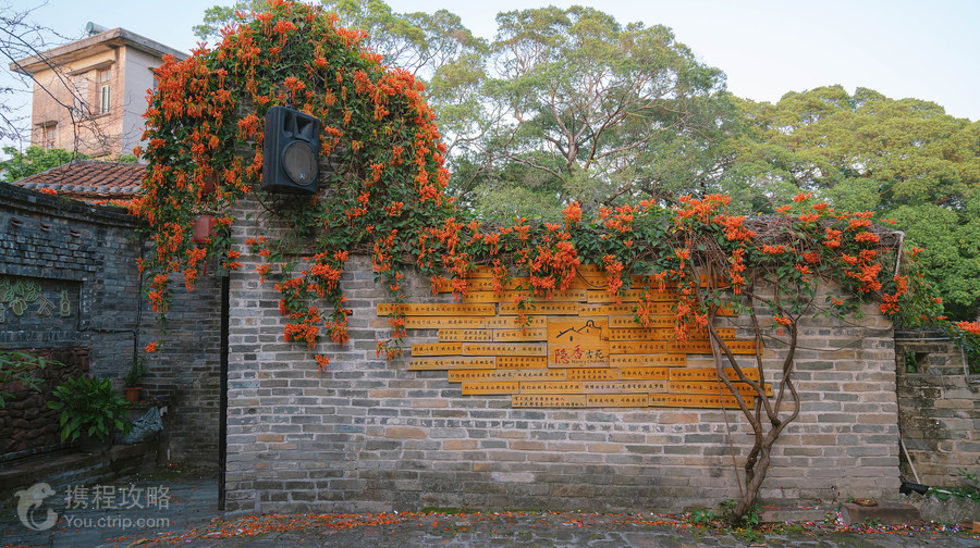 南社明清古村落全村面积约6.9平方公里,现籍人口逾三千人,是茶山一带乃至东莞较大的村庄,其维持明清格局的古村落现存祠堂达22间,古民居超过200间,是珠江三角洲难得的明清建筑和文化古址。 这里明清时代人才辈出,先后涌现了9位进士,至今保存着大量未经破坏的建筑和具有艺术价值的雕刻文物。其中以夯土、红石做墙基、以青砖砌筑樵楼的古围墙,以及传统三开间三进院落布局的谢氏宗祠均为其代表性建筑,值得一看。 百岁坊是为纪念百岁的四位老寿星而建,大家看它飞檐斗拱,古朴壮观,重修这作牌坊时却运用砖木,雕花榫铆,谨依原样,所以很好地保存了当年的风貌。旁边还有百岁翁祠,是一位百岁老人遗命用自己所居古屋改建的。资政邸,是光绪年进士,官至礼部主事的谢元俊的府邸。它坐落在小丘之腰,石级,栏杆还保持着当年的气派,两廊的花楣精美绝伦,厅中的垂花门镂刻着花卉群鸟,上面的孔雀尾、凤凰头都凸出木外,栩栩如生。