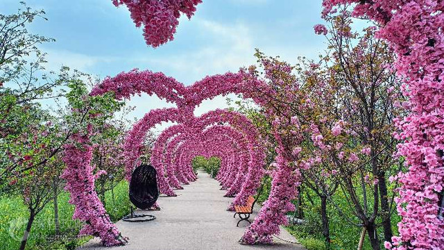 美樱花海景区位于重庆市江津区石门镇金龙村,3月,景区以赏稀有的牡丹樱花为主,将樱花美景和娱乐赏玩相结合,能让老年人品味古今,年轻人找回童真,情侣体验浪漫,儿童开心游乐。梦回大唐演艺(90分钟),网红桥、卡丁车、充气城堡游、船、萌宠。多种耍事,美食街等着你,还可体验直升飞机。