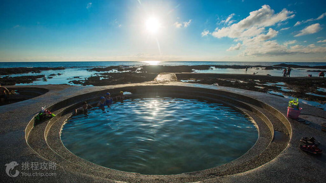 绿岛朝日温泉为罕见的海底温泉,位在绿岛东南方帆船鼻礁岩潮间带,因温泉面对太平洋,可以看见太阳缓缓从海面上升起,在日治时期有着「旭温泉」的美名。除了在晨间泡汤观看日出之外,夜晚能静听海涛声,欣赏满天星斗,或亲自以海底温泉煮出滋味特别的各种美食料理,而海中则适合初、中级水肺潜水,惬意享受另类的温泉之旅。 这里的泉质澄澈透明,温度约在摄氏60-70度,属略呈酸性的硫酸盐氯化物泉,但无浓烈的硫磺味,带有海水的咸味,对人类皮肤无刺激性洗后并不黏涩,为罕见的咸水温泉。 绿岛朝日温泉约可容纳300名游客,室内拥有齐全的水疗设备;温泉区靠海的地方设有三个圆形露天浴池,以及半户外式泡汤池、大型游泳池,浴池的水随着涨潮与退潮温度会产生变化,形成天然的三温暖。