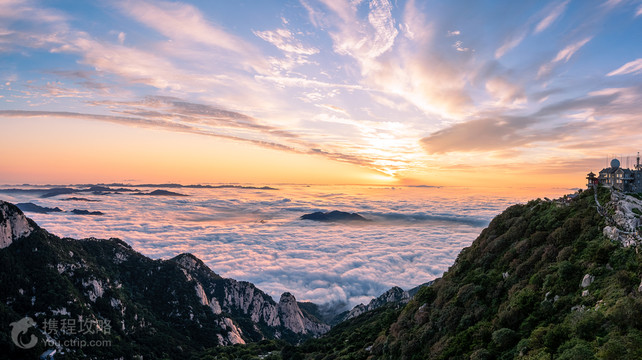 泰山风景区位于泰安市泰山区。泰山自古以来便是我国有名的山峰之一,有五岳之首的美誉。泰山风景区以壮丽著称,山峰陡峭高耸,十分壮观,在山顶观看日出、晚霞等也十分绮丽。山间经常有云海出现,而冬天则有雾凇奇观,非常漂亮。除了自然风光外,山上还有众多的古迹、石刻、宗教庙宇等人文景观。 泰山风景区春天可以看到山间的桃花和梨花,夏天山顶翠绿,而且由于山顶凉爽,所以这里还是有名的避暑胜地,而秋天山间的树叶红黄相间层林尽染,十分漂亮。 泰山风景区面积很大,纵深约有几十公里。上山有几条登山步道,还有公路和索道纵横其间,可以结合徒步、乘坐旅游车、乘索道等方式游览。泰山风景区共有四个入口,分别为红门、天外村、天烛峰和桃花峪,每个入口均有一条路线通往山顶区域的岱顶旅游区。红门、天外村位于前山,一般常规的游览路线为红门或天外村上山,当天或第二天再从其他路线下山,为了不走回头路,大多游客会从桃花峪处下山,天烛峰因距离远且道路难行,多为户外背包客路线。 红门入口的登山步道是秦始皇封禅时开通的步道。这条路线主要是石阶路,需要步行从红门到中天门,一路经过泰山风景名胜区-万仙楼、斗母宫、四槐树、回马岭、壶天阁等众多景点,也是泰山风景区上众多石刻较为集中的地带。到达中天门后可以选择乘坐缆车或步行前往南天门及山顶区域,一路可以看到泰山风景名胜区-十八盘、升仙坊、泰山风景名胜区-对松山、朝阳洞、五大夫松等多个景点。 天外村游览路线则是一条从天外村通往中天门的公路,可以乘坐旅游车前往,途径黑龙潭、扇子崖、泰山风景名胜区-冯玉祥墓等景点,到达中天门后路线即与红门路线后半段相同,不想步行或爬山的游客可选择这条线路。 天烛峰路线是泰山风景区较为险峻的登山步道,游人很少,是户外爱好者们经常徒步的地带,爬山大约需要半天。这条路线山色俏丽,有鲤鱼背等景点,起点处还有《中华泰山·封禅大典》的表演。 桃花峪路线是很多游客下山时的选择,从山顶的天街有索道到达半山腰的桃花源索道起点,然后旅游车从索道起点到山下的桃花峪。这条路线主要的景致便是桃花峪彩石溪景区,石块多有彩色纹路十分神奇,有兴趣的可以前去参观。 这四条路线通向的都是山顶的岱顶旅游区。泰山风景名胜区-岱顶上有泰山风景区的主峰玉皇顶以及神奇的天上街道天街景区,还有日观峰、月观峰、大观峰、瞻鲁台、碧霞祠、泰山风景名胜区-孔子庙等多个景点,可以步行慢慢参观。山顶可以远眺黄河,看“黄河金带”奇观,山后的后石坞也可以前去观看,内有索道可从后石坞通向北天门。 住宿信息 一般游览泰山风景区的时间多为1-2天,期间可以在山上住宿一晚。在天街和南天门附近有多家客栈宾馆可以住宿,在此看日出、晚霞和山顶的星空较为方便,天气好的夜晚在山上还可以看到市区的灯光,拍出星空与城市灯火并存的照片。山顶还可以露营,夏季时会比较合适。另外山下的入口处也有很多住宿地点。 夜爬泰山风景区 很多观看日出的游客会选择夜爬泰山风景区,晚上十一点左右出发为宜。夜爬泰山风景区一般选择红门路线,这条路上晚上会有很多人,而且一路都会有灯光。大约早上日出前刚好可以到达山顶的日观台或玉皇顶,在这里观看日出较为合适。