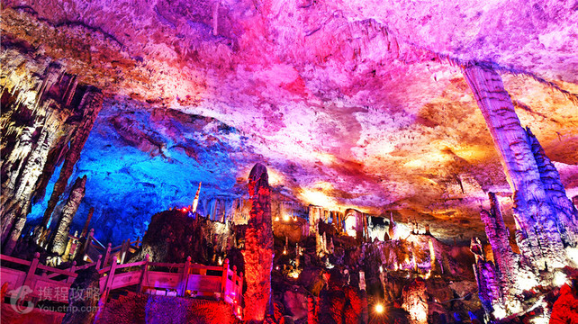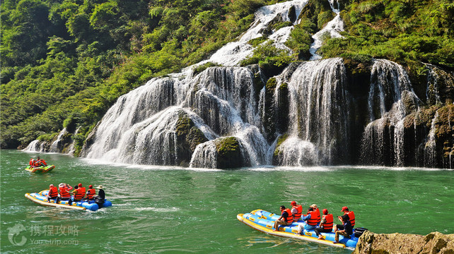 茅岩河九天洞景区,位于张家界市区以西的桑植县西南约17公里处,岩河两岸以岩溶地貌为主,间有砂崖峰林地貌自然景观,有“百里画廊”之称,可开展平湖游和漂流。茅岩河的主要景点有:血门沟、洞子坊、茅岩滩、夹儿沟、温塘温泉、麻阳古渡、茅岩河峡、水洞子瀑布等,大坝以上为平湖游,20公里以下为漂流游。茅岩河九天洞景区因洞中有九个天窗与地面相通而得名。洞内分为三层,洞中气温常年在二十多度。洞中有多个面积巨大的大厅、3段落差不同的阴河以及多处壮观的瀑布、自生桥和天然湖,洞中还有多座洞中山。形态各异的钟乳石是洞中的另一个亮点,石笋、石柱、石人、石兽等千姿百态,层层密布,在灯光的衬托下,显得美奂美伦,其中九星山玉柱、九天玄女宫和寿星宫三处令人叫绝。