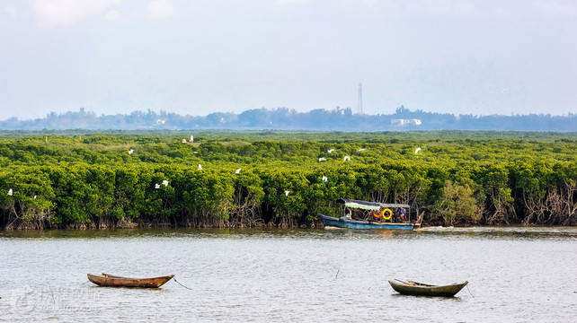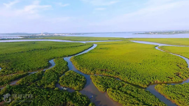 东寨港红树林是一片安静的自然保护区。红树林具有顽强的生命力,涨潮的时候除了树冠几乎全部都淹没在水里,到了退潮时才渐渐露出树干。游客乘坐游船能全面欣赏到红树林的优美景色,幸运的话还能看到各种鸟类,特别是到了秋冬时节这里几乎是候鸟的乐园。