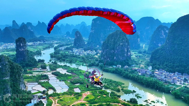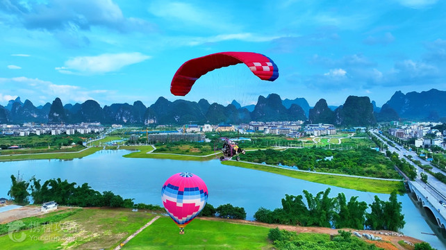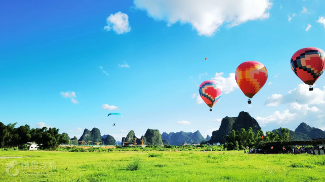阳朔兴坪燕豪航空基地是一家大型航空飞行娱乐基地,基地占地约200亩,位于美丽的漓江之畔,紧邻九马画山,20元人民币背景风光,黄布倒影,环境十分优美怡人,被游客赞誉为中国至美的航空飞行娱乐基地。基地目前已开发符合国家标准的起飞和降落场,可容纳十余架飞行器(或热气球)同时起飞降落,基地有停车场、游客接待中心等服务设施。基地拥有有经验的飞行教练员、飞行员以及专业的管理团队。