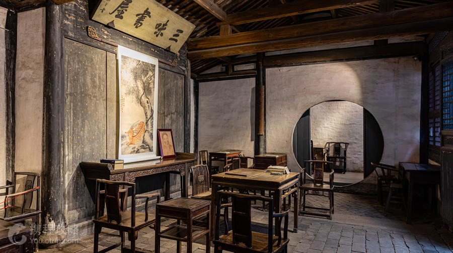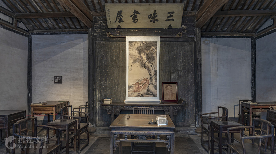 三味书屋位于鲁迅故里内,鲁迅少年时代曾在此学习了5年。游人来到这里,总难免要回味一番儿时课文《从百草园到三味书屋》中的字句,以及鲁迅在书桌右下角“刻下一个小小的‘早’字”的故事。 百草园和三味书屋相距不远,你可循着鲁迅的足迹,从百草园一路走过来。出百草园往东走几百米,再过一座石板桥,就到了。进了三味书屋,旧时私塾映入眼帘。虽然后来有过重修,但里面的陈设基本保持了当年的原貌,和课文中的描述相差无几。书屋正中悬挂着“三味书屋”的匾额,匾额下挂着一副《松鹿图》,旁边摆的是寿镜吾先生的像。以往学生上课要先对着匾额和图行礼,才开始读书。 书屋中间一张八仙桌,后面的高背椅是先生坐的,四周是学生的课桌,由于是学生自备的,所以看上去各式各样。鲁迅刻过“早”字的那张课桌躲在左边墙角,旁边有标识让人一眼就能认出来。这张有两只抽屉的硬木书桌是当年鲁迅用过的原物,可惜有围栏挡住了,只能远看,上面的“早”字几乎很难看清楚。 书屋后面的小园里有砖砌的小花坛,还能见着文章里描绘的那边的情形:“三味书屋后面也有一个园,虽然小,但在那里也可以爬上花坛去折腊梅花,在地上或桂花树上寻蝉蜕”。如今这里种着腊梅、天竹、桂花,也是个不错的小园子,供游人想象鲁迅儿时的欢乐。 三味书屋前有乌篷船码头,可乘乌篷船至咸亨酒店,算得上是不错的水乡体验。也有其它线路可以选择,线路不同价格也不同(具体可看码头的价目表)。