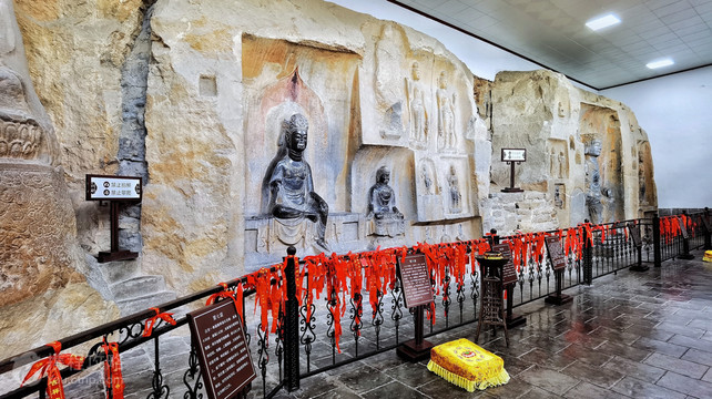 药王山,位于铜川市耀州区东面约1.5公里处,唐时称磐玉山,宋以后称五台山,山上古柏苍翠,碑石林立,风景优美,还有众多的古迹可供游玩。中国古代著名的医药学家——隋唐时代的孙思邈,晚年归隐于此,孙思邈被后人称为“药王”,药王山因此而得名。这里自古就是人们纪念孙思邈的中心场所,每年农历“二月二”庙会,游人从四方云集而来表达对孙思邈的崇敬与怀念。 药王山上如今还保存有金、元建筑及大型元代壁画,游客还能观赏到明代药王大殿及药方碑,此外还有太玄古洞、洗药池等景点五十余处。药王山石刻遍及全山,隋唐摩崖造像四十余尊,精美绝伦,其中有北魏至唐代造像碑百余通,非常珍贵;历代碑石二百余通,这些都是药王山的实物历史档案;还有石塔、石棺、石碑坊等众多石刻可以供游客观赏。