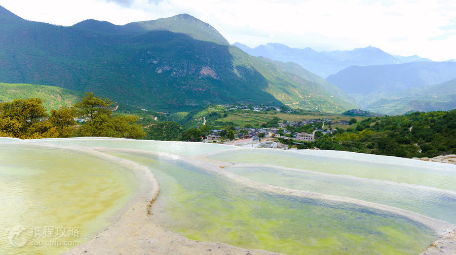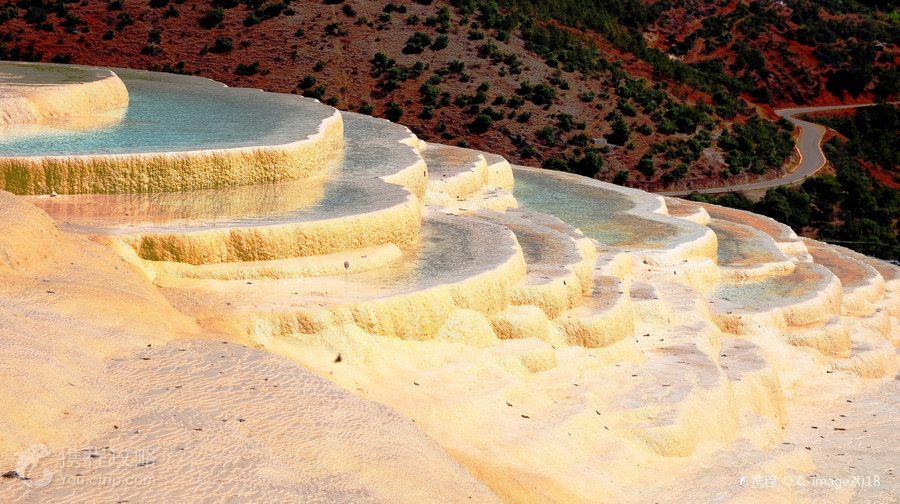 云南也有“土耳其棉花堡”,它就是白水台,位于香格里拉县三坝乡,距离香格里拉县城约一百公里。郁郁葱葱之中露出白色的华台,层层叠叠,仿佛一片白色的梯田。相传,纳西族的神灵为了让人们学会种田耕地,特地变幻出这样一片梯田,后人称之为“仙人遗田”。 白水台不仅是一个风景秀丽的地方,也是纳西族东巴教的发源地。每年农历二月初八,是纳西族一年一度的“朝白水”活动,四里八乡的藏、纳西、彝、白、傈僳等民族都会到汇集于此,用歌舞和野餐进行祭祀活动,向神灵祈求来年的丰收。