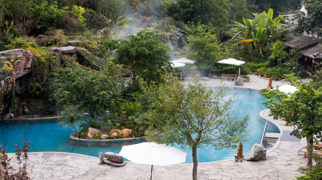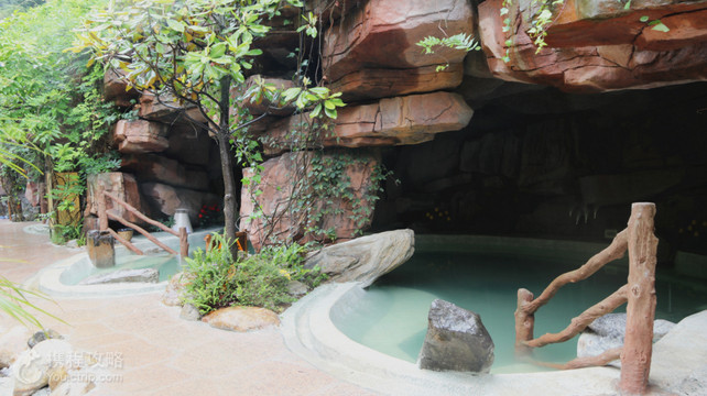 美女池温泉如同一块被地壳运动揉皱的翡翠,嵌在火山岩与溪涧交织的褶皱中,这里是一座由沸泉、热泉、温泉共同构建的开放式地热博物馆。 泉群沿断裂带自然分布,7个泉池因矿物质成分差异呈现出从乳白到孔雀蓝的渐变色谱。“沸泉帘幕”是90℃的地热水从玄武岩裂隙中涌出,在钙华沉积形成的钟乳状岩壁上淌成天然水帘,游客可在安全距离外感受蒸汽拂面的震撼。池区东侧保留着完整的地热蚀变带,赭红色高岭土与硫磺结晶在崖壁上交织出抽象画作,常有地质爱好者在此临摹记录。 除常规泡浴,游客可参与“地热盲盒”体验:用竹篮盛放鸡蛋、花生,悬挂在不同温度的泉眼上方,观察食物在蒸汽中渐变熟透的过程。若沿步道向山谷深处探索,会遇见成片的温泉苔藓群落,这些在恒温环境中生长的绿毯,随水流方向铺展出漩涡状生态艺术。 建议在雨季清晨造访,冷泉与热雾在山谷中碰撞出流动的云海,池畔木亭里备有当地村民制作的石斛凉粉,搭配火山石烤制的糍粑,可感受冷热交替的味觉趣味。