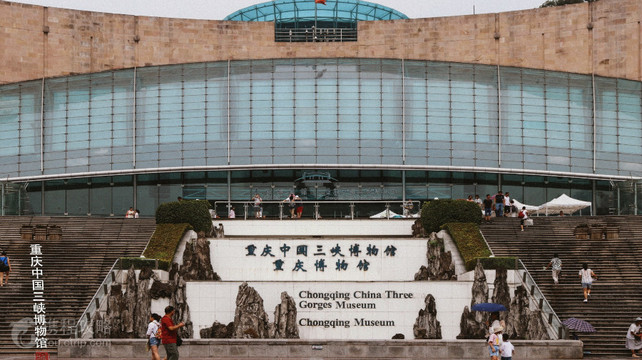 三峡博物馆位于重庆人民广场西侧,三峡博物馆内收藏有巴蜀青铜器、汉代雕塑艺术品等各类文物上万件,展示了这座山城的发展历史。三峡博物馆内的《壮丽三峡》展厅里,还收集了大量三峡库区的实物,真实再现了三峡原貌。博物馆建筑正上方漏斗型的圆形穹顶很像一个巨大的承露盘,取“三峡之水天上来”之意。外墙以大面积的蓝色玻璃和古朴的砂岩构成,蓝色玻璃象征着水,而砂岩外墙则代表着山。三峡博物馆共分四层,主要由360度环幕电影、4个基本陈列(《壮丽三峡》、《远古巴渝》、《重庆·城市之路》、《抗战岁月》)和6个专题陈列等组成。一楼的360度环幕数码电影,展示了库区蓄水前三峡的自然风光、人文风情,是对三峡风貌的永恒纪念。《壮丽三峡》展厅里收集了大量三峡库区的实物,真实再现了三峡原貌。二楼的《远古巴渝》展示了重庆古老的文明,追溯其3000年文化的根源,《重庆·城市之路》则是以大量的文物资料展示出重庆近百年来的城市变迁。三楼的“重庆大轰炸半景画陈列馆”,通过现代科技手段及雕塑、油画作品等形式,再现了重庆大轰炸的历史事件。《抗战岁月》以诸多详实的资料,展示出重庆这座城市和重庆人民为抗日战争作出的贡献与牺牲。四楼的历代书画、瓷器、钱币和汉代雕塑艺术展里,展示了上千件各色珍贵文物,有著名的“说书俑”、“巴渝神鸟”、“乌阳汉阙”等珍贵文物。西南民族民俗风情厅,展示了大西南地区各民族的民俗和文化。