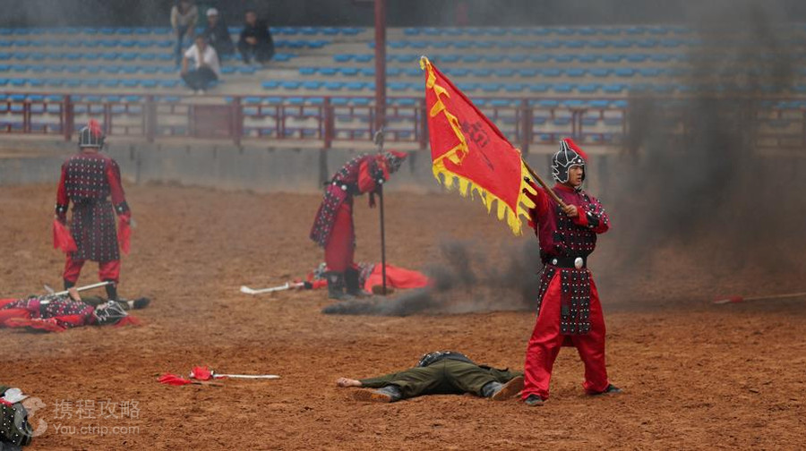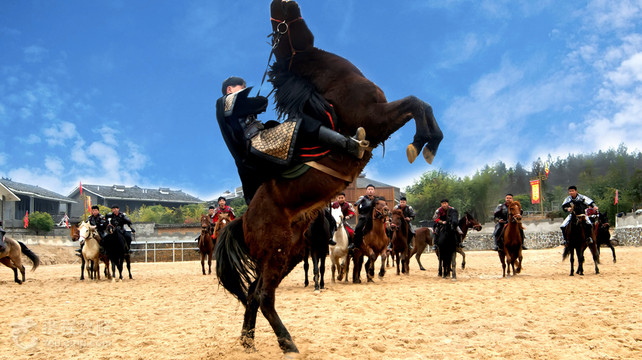 剧场介绍:巴蔓子剧场位于,被誉为“世间男子不二心,天下女儿第一城”的恩施土家女儿城,剧场总面积20000平方米,演出场地5000平方米,可同时容纳2500人同时观看,观众席配备了除尘、降温、增香系统,演出过程中无任何异味,在炎炎夏日,也可凉爽的观看整场演出,剧场开设骑马体验及飞天威亚,飞天威亚全长300米,可同时乘坐4人,轻松实现游客的飞天武侠梦,剧场还配备了,水炸、火炸、灯光、烟火等高科技设备,定给游客带来一场视觉盛宴。剧场演出时间分为上午场、下午场、夜场(夜场效果更佳),可关注公众号详细了解演出时间。剧情介绍:巴蔓子将军,是战国中期的巴国将军,相传在战国中期,巴渝地区的巴国走向了衰落,一些权贵趁机向巴国王室索取政治经济利益,以至发动了武装叛乱,人民遭受了深重灾难。驻守在巴国东部边境的巴蔓子将军将赶回国都平乱,但他掌握的兵力却不足以战胜权贵的武装,巴蔓子随即决定向东边的楚国借兵。过程中与楚王约定,并以项上人头担保,成功平乱之后,割让三座城池于楚国,随即楚国出兵,与巴蔓子一共赶到巴国国都,成功平乱,随后,楚王使者前来索要城池,巴蔓子割让城池则为不忠,不割让则为不信,随即巴蔓子自刎头颅以谢楚王,完成了这忠义之举,巴蔓子的故事也在巴渝地区广为流传。