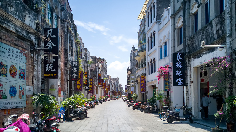 北海老街位于珠海路及中山路区域,是一条始建于1821年的街道,这条1.44公里长的老街两旁,分布着英法德等国领事馆旧址、德国森宝洋行旧址和天主教堂女修院旧址等许多中西合璧的骑楼式建筑。 如今的北海老街已被开发成一条特色的商业街,出售各种商品,你也可以在这里吃到比如香辣花螺、虾饼、猪脚粉等各种当地美食。漫步在北海老街,你还可感受不一样的市井风情:躺椅上摇着蒲扇哼着曲儿的老人、聚在一起吃饭、聊天、打牌的居民等,这些都可以成为摄影爱好者镜头中的主题。 北海老街的入口处竖有一门楼式牌坊,门额上镶嵌着一块石匾,上面写着“升平街”三个楷书大字。北海老街上的建筑大多为二至三层,墙壁基本都由灰、黄、黑三种色调构成。每一栋楼的正中,都刻有自家的印记,如“陈荣和”、“潘德祥”之类;街上亦有天主教堂、药堂、酒肆、茶坊等。你可以从一个个斑驳残缺的招牌或刻印于骑楼之上那逐渐褪色的字迹中,寻找北海老街昔日辉煌的痕迹。也可以从沿街的商铺、咖啡厅、小吃店中感受这里如今的热闹。