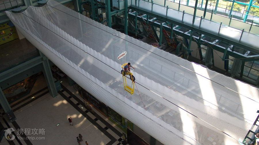 台湾科学教育馆是一座具备多元科学展示及许多教育活动的展馆,常设展区包括了生命科学、物理、化学、数学与地球科学等丰富的内容;特展区则是透过生动精彩的展示方式传递生活化的科学知识。科教馆还不定期与国内外博物馆合作,举办有趣的科学相关展览;另外还有动感3D剧院、立体剧院、地震剧场、科学图书馆及设备齐全的科学实验室,拓展民众对应用科学的视野。 你的心脏够强吗?你敢挑战吗?台湾科学教育馆空中脚踏车,大胆的你一定要来挑战!利用含杠杆原理、不倒翁重心原理、张力原理三项平衡原理,五层楼高的空中脚踏车安全又刺激,现在就戴上安全设备、坐上脚踏车,挑战看看!还可以试试左右摇晃压车,看你可否打战胜不倒翁原理,成功压车呢?!空中脚踏车应用原理,交互式空间脚踏车,架设于离地五楼高,展现平衡力原理,成人和孩子们借由骑乘脚踏车过程中,可亲自体验相对平衡和重力中心原理。