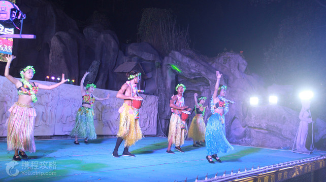 温泉区每天晚上8:30-21:00都有固定的表濱:享受巴厘岛风情温泉区,温泉池共建设爪哇海啸动感温泉冲浪、温泉漂流区以及众多的药物浸泡、花浴等各式温泉池45个,让游客感觉就像在沙滩上冲浪般刺激,还可以让游客和设施进行互动——温泉喷水、发出声音等。温泉池旁边的假山上有个舞台,游客在冲浪、漂流、泡温泉之余还可欣赏到别具东南亚风情的歌舞表演。