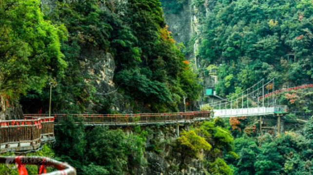 秦岭洞天福地景区位于商洛柞水县石瓮镇,地处秦岭南麓,有大小溶洞108个,是我国北方经典溶洞群落,目前已开发出了以三洞一台为主景的风景游览区,即佛爷洞、天洞、风洞和对峰台。 佛爷洞洞内有两尊高大的佛像,洞内全长900余米,分上、中、下三层。天洞因洞口直入云霄而得名,洞内钟乳玲珑剔透。风洞进出皆有奇风迎送,全长约4公里,山泉穿洞长流不息,石柱、石笋、石帷遍布;令人惊叹的是洞内常年有百鸟栖息。 秦岭洞天福地景区不仅景观神奇、幽美,而且是北方少见的溶洞群,被列为陕西省十大风景名胜区之一。秦岭洞天福地景区外围山清水秀,风光秀丽,气候温润。而前往秦岭洞天福地景区所经的秦岭隧道可称亚洲第一,隧道内布置了不少景观,可顺路参观。 秦岭洞天福地景区是经柞水县人民政府批准,柞水溶洞和古道岭整合并命名为“秦岭洞天福地景区”。景区位于秦岭南麓,距西安76公里,距柞水县城16公里。地处秦岭造山带和中国南北气候过渡带,是以溶洞、峡谷、瀑布、古生物化石等地质遗迹景观为主体,辅以丰富的生态景观和人文景观,集科学和美学价值于一体、以中国传统的“五福文化”为主题打造的集旅游观光、休闲娱乐、高空项目、极限挑战、研学等于一体的综合景区。 景区游玩路线 ①:观光路线:检票口进入景区 —— 步行至溶洞入口(约20分钟)——溶洞内游览(约1小时)—— 步行下山(约20分钟)——古道岭(约2.5小时)——玻璃栈道——悬空栈道——玻璃天桥——古道岭驿站小吃街 ———秋千乐园——十八盘—— 悬空栈道 ——玻璃栈道 ——景区出口。(游览全程大约4.5小时) ②:省时、省力路线:检票口进入景区 ——观景电梯至溶洞入口(约30秒)——溶洞内游览(约1小时)——大理石滑道(全程3分钟)——古道岭(约1.5小时)——时空列车——玻璃天桥——地心电梯——古道岭驿站小吃街 ——秋千乐园 ——极限滑索/玻璃滑道(二选一)——时空列车——景区出口。(游览全程大约3小时) ③:观光 + 游玩路线:从检票口进入景区 ——观景电梯(约30秒)——溶洞内游览(约1小时)——大理石滑道(全程3分钟)——古道岭(约1.5小时)——时空列车——玻璃天桥—— 地心电梯——古道岭驿站小吃街—— 励志园—— 秋千乐园 —— 飞跃终南极限运动公园(选择性项目,约1.5小时)——极限滑索/玻璃滑道(二选一)—— 时空列车——景区出口。(游览全程大约4小时) 注:因景区体验项目不适合所有人游玩体验,有年龄、身高、体重等限制,所以采取体验项目单独售票原则,无强制收费项目,游客可自愿购票游玩,收费价格及注意事项,敬请留意所在项目的相关指示牌。 关于景区项目类别 景区包含:柞水溶洞、古道岭等5大版块。游览体验完所有项目全程大概需要5小时左右。 ①:柞水溶洞 ②:古道岭:玻璃栈道、玻璃天桥、悬空栈道、高空走钢丝表演秀(表演时间:每天12:30、14:00、16:00) ③:秋千乐园:长龙秋千、许愿树秋千、旋转秋千 ④:励志园:绳网乐园、重走长征 ⑤:飞跃终南极限运动公园:云上飞艇、步步惊心、仙旅桥、悬崖蹦极、悬崖秋千、云上漫步、悬崖自行车