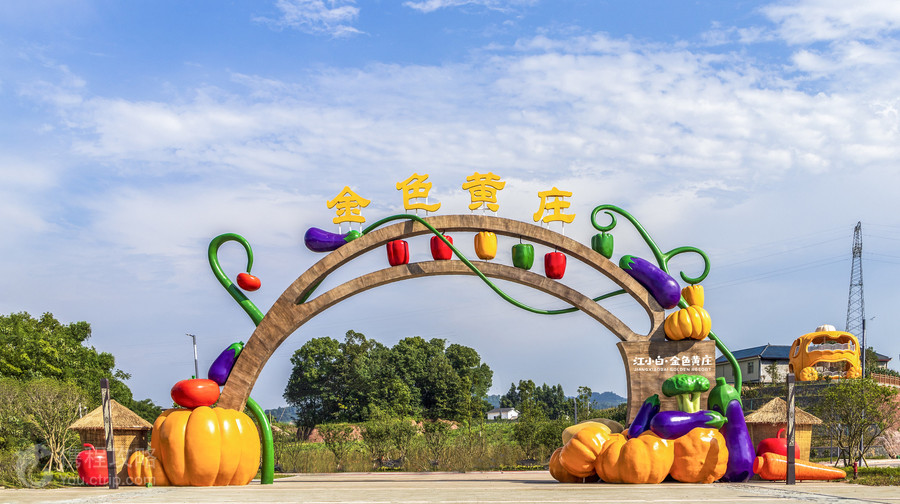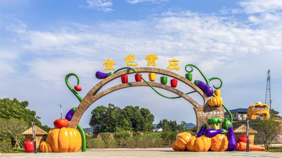 江小白·金色黄庄,建设有江小白的一亩三分地和全市首座农科文化主题乐园——大地乐园。项目充分运用大数据、人工智能、VR、AR等互联网前沿技术,通过沉浸式互动项目,打造农科世界、巨型花园、热带丛林等场景,为游客创造了一个光怪陆离、趣味探险、幽静避世的理想田园。