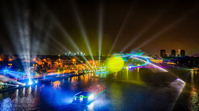 华灯初上,古运河畔的景色便更加迷人。游人们犹如置身灯影中的水天堂,充分感受到苏州这一东方水城的独特魅力。一艘艘穿梭往来的游船,木船划破平静的河面,激起阵阵涟漪,水上夜景委实迷人,身临静谧优雅的山塘街环境,目睹妙不可言的江南水城夜景,怎不使人心旷神怡,如痴如醉,流连忘返。