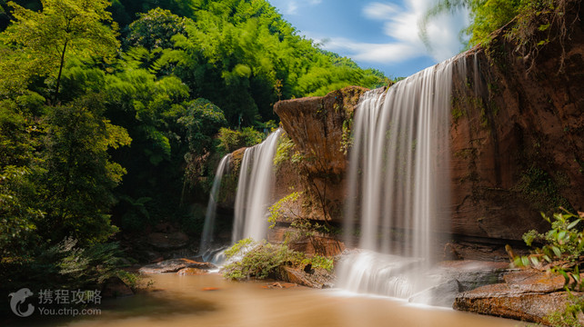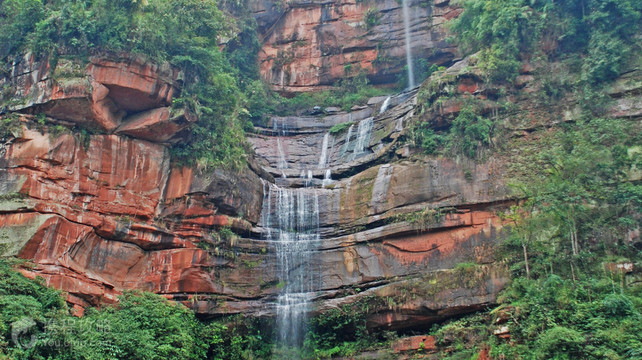 赤水境内有1000多平方公里的丹霞地貌。因其艳丽鲜红的丹霞赤壁,拔地而起的孤峰窄脊,仪态万千的奇山异石,巨大的岩廊洞穴和优美的丹霞峡谷,与绿色森林、飞瀑流泉相映成趣,赤水丹霞成为具有较高观赏价值的旅游景点。 丹霞地貌是指红色砂岩经长期风化剥离和流水侵蚀,形成孤立的山峰和陡峭的奇岩怪石,是巨厚红色砂、砾岩层中沿垂直节理发育的各种丹霞奇峰的总称。主要发育于侏罗纪至第三纪的水平或缓倾的红色地层中,这种地貌以广东北部的丹霞山为典型,所以称为丹霞地貌。