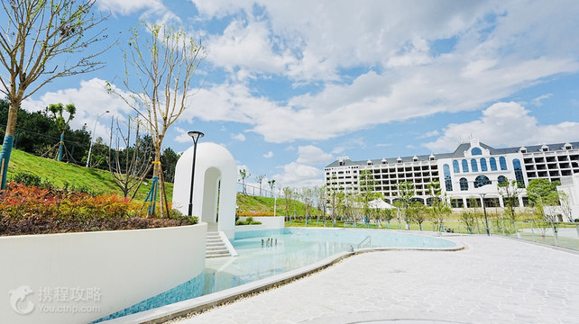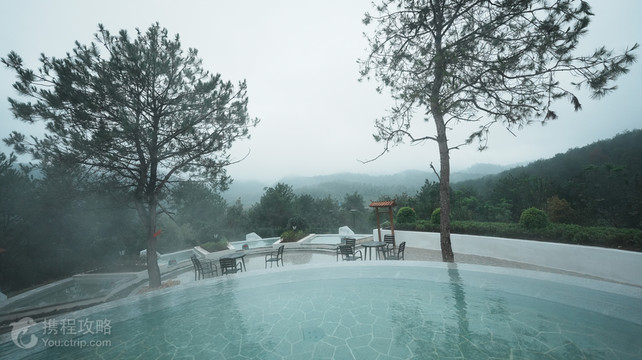 度假区坐落在素有鄂中绿宝石,武汉后花园,中国天然氧吧的京山市,毗邻青龙山,青山环绕,满目苍翠,整体以欧式建筑风格为主,依山造势,错落有致。度假区地理位置优越。30泓纵横交错、形态各异的温泉汤池星星点点的散落在山谷之中,仙雾缭绕,宛如人间仙境。功能多样的水疗在温泉沐浴,尽揽山色的半山无边泳池、配置齐全的室内外亲子游乐嬉水设施,更是家庭度假休闲的选择。6栋温泉庭院别墅静静隐匿,可与家人朋友沐浴温泉的同时听风看雨,观星望月。山水天沐,返璞归真,在天人合一里洗涤尘世烦嚣,在回归自然中感悟人生真谛。