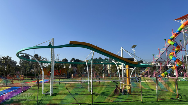 会理现代农业科技园亲子乐园位于会理南面,风景秀丽,环境优美,是集休闲、娱乐、亲子、餐饮、会议、民宿,垂钓为一体的综合乐园。占地面积约300亩,园区内绿树成荫。公园距离核心城区直线距离约3公里左右,交通设施完善。 科技园亲子乐园区以“亲子乐园”为主题,滑世界、彩虹滑道、勇攀高峰、丛林穿越、丛林魔网、水上拓展、儿童滑滑乐、旋转飞椅、熊猫蹦蹦云、网红沙滩、秋千阵、网红树、网红桥、多人秋千、过山车、滑索、旋转自行车、太空漫步、飘逸跷跷板、摇摇乐、鸟巢、爱心天梯、蝴蝶秋千、天使翅膀、感应花、海洋球、自行车喊泉、无动力海盗船等众多时下流行的娱乐游玩元素,让孩子玩得尽兴;让你在惊险、刺激、竞技的冒险之旅中,激情狂欢;选个周末或假日,带上你的孩子,一起来体验一下吧。 园区环境优雅,农家特色饭菜常供常新。多种地道的原生态绿色食品及生态蔬菜为原料的特色菜,让你吃的安心、吃的放心。园区设置有室外停车位,具有特色的餐饮厅,让你在享受美食的同时,欣赏自然的美景,呼吸新鲜的空气,是你和家人聚餐、宴请亲朋好友的理想选择。