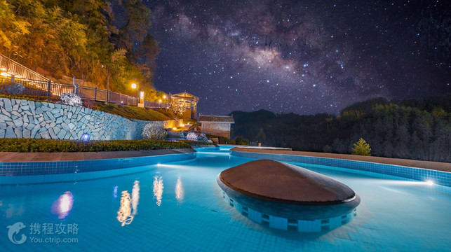 凤凰凤仙境温德姆豪廷温泉坐落于千年凤凰古城,背倚华山国家森林公园,紧邻沱江下游,森林氧吧环绕,怡人温泉秘境;庄园内仙境泡汤,可享受含氟偏硅酸的天然泉水,温泉中心共计拥有68个室外温泉泡池和11栋私密的温泉汤屋,由六大区域组成,分别为圣泉飞瀑、沙海拾趣、梨园戏梦、秀玉山谷、瑶池仙境、仙山琼阁,各具特色,水质佳美,水量丰富。