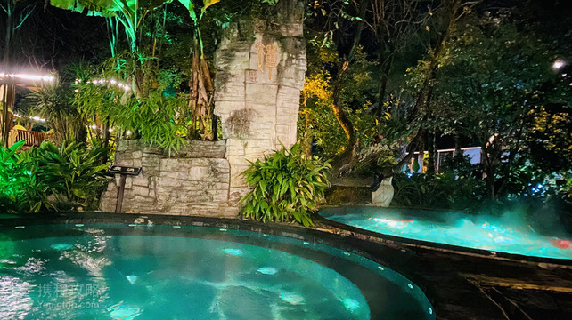 斗篷山温泉位于都匀市北部,是利用原083系统305厂旧址开发建造,是具有东南亚风情、含硒元素的度假温泉浴。温泉区内分为:室外泡池区、室内水上娱乐中心、功能区三部分,室内水上娱乐中心及部分功能区正在建设中。