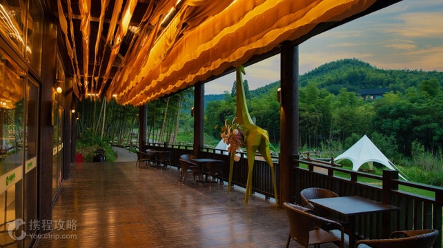 湖州长颈鹿庄园位于湖州市吴兴区西塞山旅游度假区,距市区仅20公里。景区开发面积约1200亩,依照着山纹水脉建设,较大的保护森林自然资源。在这片竹海内,不仅含有150000-200000万/cm3的负氧离子,庄园还涵盖了旅游观光、长颈鹿餐厅(台湾特色)、萌宠互动、湿地公园、儿童智力游乐园、学生室外大自然研学等健身助教项目。 湿地公园:里面生活着好几种野生鸟类,其中有斑嘴鸭、绿头鸭、白鹭、蓑衣鹤等。 长颈鹿互动平台:园内已经有8只长颈鹿了并且以后数量还会增加,在互动大厅里可以近距离和它互动,还能喂它吃东西哦~ 长颈鹿餐厅:餐厅更贴近于回归大自然的感觉,大家在景区内用餐可以选择这里,因为不但能与长颈鹿共进早餐,还提供丰富多样的早餐品种。长颈鹿自助餐厅内大约能同时容纳160多人、儿童餐厅大约能同时容纳60多人、湖畔酒吧大约能同时容纳60多人,并且餐厅内有颇具特色的台湾自助烤肉。