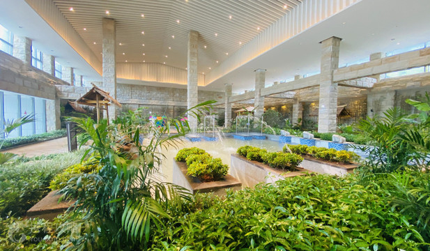 位于中国才子之乡——江西省抚州市临川区温泉镇,背靠景色宜人的青莲山南麓,是集星级酒店、温泉公园、特色餐饮、商务会议、豪华别墅、精品公寓、温泉汤屋等于一体的一站式近郊旅游目的地。温泉水源取自于地下400米深处,出水温度达63℃,日出水量约5000多m³,PH值达到7.04 室内温泉馆 室内温泉馆建筑面积约2000㎡,主要以水疗池和儿童戏水池为主,科学运用温度、压力、水、以不同的形式和方法利用泉水对人体进行浸、冲、按、淋。其中,儿童戏水区设有大象滑梯、小蘑菇组合、苹果屋、跷跷板等供孩子们尽情玩耍的水上游乐设施。另外,还人性化的为女性游客专门设置了牛奶池、红酒池等特色温泉泡池 露天温泉区 露天温泉区总建筑面积约38000㎡,园区内充分将中国传统文化与地方文化相结合,偏于楼阁映水、水木相应,于不经意处皆可见唯美的花草山石点缀,让建筑与自然相依,体现了独特的婉约与雅致。并注重人与自然的和谐,建造有大、中、小温泉泡池86个,分为才子佳人区、花坡诗词区、喷泉广场区、曲艺戏影区、湖中岛屿区、亲子乐园区、密林汤屋区八大主题泡汤区。沐浴其中,令人骤生“久在樊笼里,复昨返自然”之感。