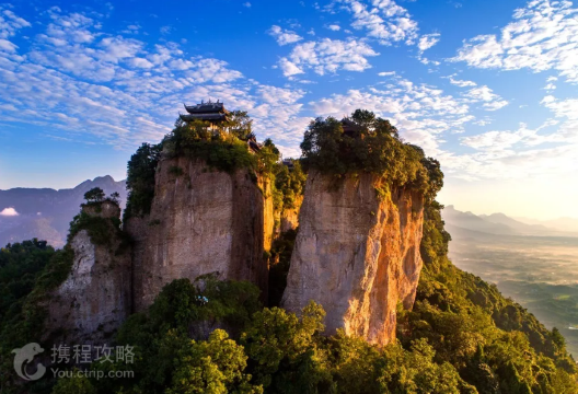 窦圌山景区,又名圌山,位于四川江油城北20公里的涪江东岸,是剑门蜀道的重要组成部分。这里是登山赏景的不错选择,一路上可以欣赏到各种奇峰异景,感慨于大自然的鬼斧神工,体力不好的游客也可以选择缆车游览。 峰下不远处有一座云岩寺,可以去寺内看看珍藏的道教文物“飞天藏”。圌岭铁索飞渡堪称神州一绝,在山顶可以看到惊险刺激的走高空钢丝表演。相传唐代彰明(今属江油市)主簿窦圌(字子明)隐居于此,故名。自麓至顶约5公里许,行道迂回盘旋,林木苍翠,景色秀丽。 李白少年时曾游此山,题下千古绝句“樵夫与耕者,出入画屏中。”