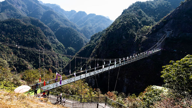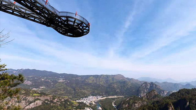 爱洛斯云廊位于4A楠溪江核心区域永嘉书院景区内高峰,于2019年7月正式对外试营业,项目包含五大高空体验:天空云廊、悬崖秋千、玻璃天桥、云上玻璃栈道、高山丛林玻璃滑道,整体长度1800米,各项目建筑物高度落差高达400米,整体铺设全透明三层夹胶钢化透明玻璃,游客可以站在透明的玻璃上走看着底下的山谷和远处的风景,体验楠溪江风景另一个角度的魅力。天空云廊爱洛斯·天空云廊位于永嘉书院观景台之上,云廊出峰总长度68米,建筑总面积约300平方米,高落差达400米。整个云廊由H型钢桁架和全透明玻璃组建,平面布置呈”A”字型,顶端为圆形回廊观景台,也是整个云廊落差大的地方。置身天空云廊之上,楠溪江美景尽收眼底,看四周,云遮雾绕,山峰林立,苍林翠滴,恍若仙境。悬崖秋千爱洛斯·悬崖秋千,共有三组,位于海拔350米的山体上,其中一组吊索长达10米,另外两组吊索长为6米。坐在秋千之上,荡出去的高落差可达400米,让人顿生腾空之感,仿佛插上了一双翅膀,直上云霄。当秋千回荡在高点的适合,放眼远望,“荡胸生曾云,决眦入归鸟。”之感扑面而来。玻璃天桥爱洛斯·玻璃天桥全长200米,宽2米,高落差约280米,整座天桥横跨于两座陡峰之间,宛如彩链,桥身使用全透明玻璃铺成,且为保证游客的安全,每块玻璃均采用三层钢化夹胶结构,具有高强度、抗弯曲、耐冲击等特点。游客走在桥面仿如在云中漫步,抬眼望去,一条飞瀑悬挂于对面山壁之上,“飞流直下三千尺,疑是银河落九天”之美景跃然入目。云上玻璃栈道爱洛斯·云上玻璃栈道建于落差近280米的悬崖之上,宛如一条巨龙盘恒在爱洛斯·玻璃天桥之畔。栈道使用全透明、高透光玻璃铺成。行走在玻璃栈道上,一面是悬崖陡壁,一面是百丈深渊,让您切身体会如临深渊,如履薄冰之感。晴天时,蓝天白云与青山绿水的倒影铺满整个栈道;若是雾天,玻璃栈道若隐若现,其美景更是让人惊赞不已。高山丛林玻璃滑道爱洛斯·高山丛林玻璃滑道全长280米,大落差300米。滑道主体呈S型透明玻璃管状,采用了双滑道设计,并在沿途有多个拐弯角,游客利用重力惯性“一滑而下”。为了增加安全性,滑道两侧设有自动减速扶手,游客可通过脚踩和手扶的方式自行减速,使游客的滑行速度自由可控。“玻璃滑道顺山下,一秒山上,一秒山下”。