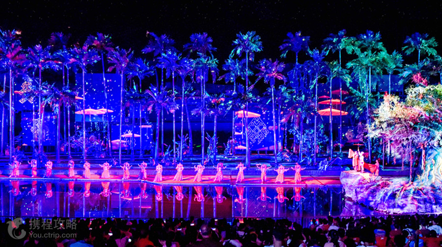 大型椰海实景演出《红色娘子军》是国家实景演出标杆《长恨歌》的姊妹篇在三亚红色娘子军演艺公园。演出结合舞蹈、戏剧、音乐、特技等艺术形式,由300名专业演员真情演绎,再现上世纪30年代海南革命中一群花季少女浴火重生,成为热血巾帼英雄的传奇故事。演出设置有2400座席的可移动车台,开合式可移动舞台,随剧情生动变换,呈现出立体、壮美的海岛风情画,带来沉浸式互动观演体验。惟妙惟肖的舞美,裸眼3D、特技爆破、180米大跨度真人威亚表演等酷炫前沿科技,呈现多媒体光影盛宴,突破舞台演出的想象边界,带来视觉与听觉的双重震撼。
