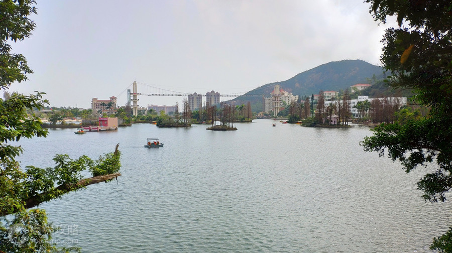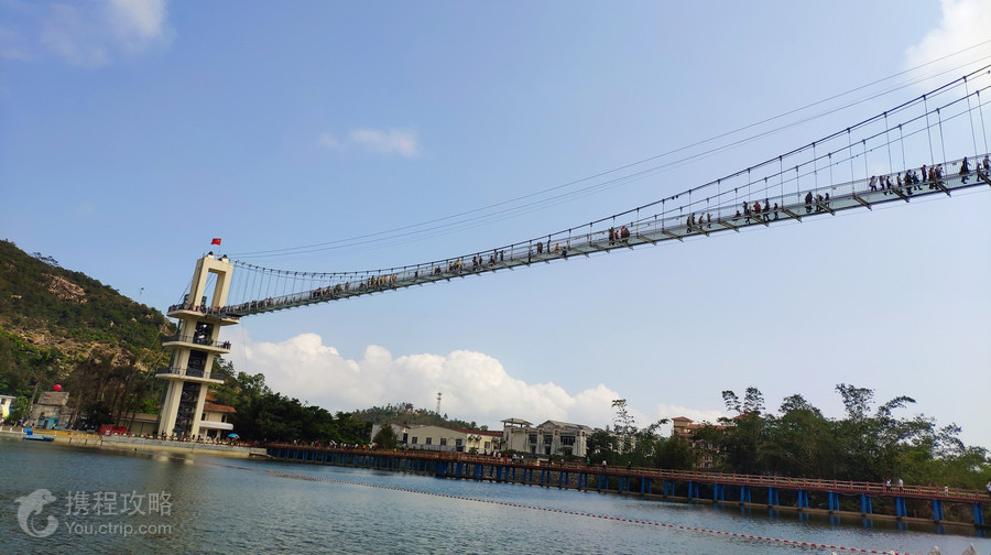 古兜财神玻璃桥位于江门古兜温泉小镇山泉水世界内,全长200米,桥高50米,桥面悬空300米。玻璃桥经过幻影触碰技术玻璃效果刺激,在同一桥面观赏山海湖泉优美风光,把古兜温泉小镇的繁华全景尽收眼底。