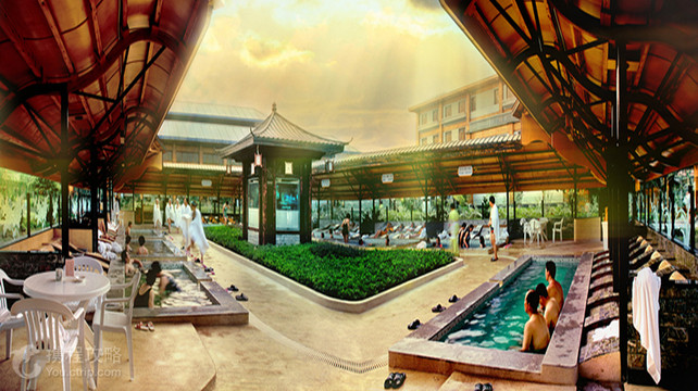庐山天沐温泉度假村与陶村相邻,是当地老牌温泉中心。白天爬了庐山,晚上舒舒服服泡个温泉,再出去吃个夜宵,回到度假村内住下,非常惬意。 在天沐泡温泉是件挺享受的事,度假村内的建筑为江南园林风格,环境优美。泉池很集中,四周都有电视,并且通常会提供自助姜茶和热酸梅汤。泡完温泉可以去二楼休息,吃点免费的水果瓜子。此外,也有自费的足疗捏脚可以参加。夏天景区内的水上乐园会开放,届时不仅能泡温泉,也能体验清凉。 景区周边的陶渊明故里、醉石涧可一并游玩。