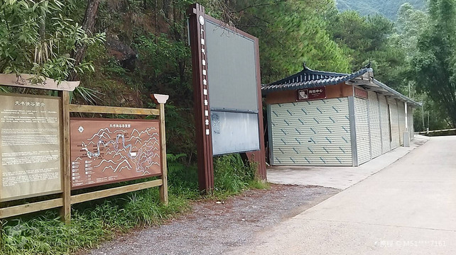 天书侠谷位于蒙山县城东5公里,因谷口那巨大的“天”字和谷内清潭上的“天书奇石”而得名。峡谷蜿蜒于倮倮峰、观音山、古朗寨、旗号岭等群山之中,全长10多公里,葫芦江和三叉江的两道清溪绕谷流淌。旖旎的风光闻名于桂东,神秘的故事渊远流长。玉梦清潭是峡谷的中心景区,玉梦清潭呈S型,长约百来米,潭边奇石百怪,或如蟾蜍,或似马尾,潭深处达三丈,水清见底,游鱼可数。身置潭中如入梦境,所以人们也把峡谷叫做玉梦冲。在清潭的中部,有一巨石伸出潭中,石上有数百只大、小不等的马蹄印,传说是天宫里贪恋人间仙境的天马降临人间遗留下的足迹。当地民谣这样唱道“大马追细马,追跟清潭下,谁人看得见,白银养兵取天下”。离开清潭,涉过两道水,眼前出现了一座石山,它形似一巨大的铁柱,上面挂着个铜钟,此处名为铜钟山。沿着“仙蟆坳”漫坡百步天梯,虽是夏日当空,下到这里却是树荫蔽日,青藤倒挂,嫩叶擦肩,花瓣拂面,使人感觉清凉一片,绿意静心。往前走,步移景异,登仙潭、洒瓮池、香烛峰、童子拜观音等一处处美景呈现眼前。过龙门峡时,赫然看见一道三级的瀑布,飘飘洒洒,在岩石上碎成千斛碎玉,万点琼花,落下之后聚成了龙潭。