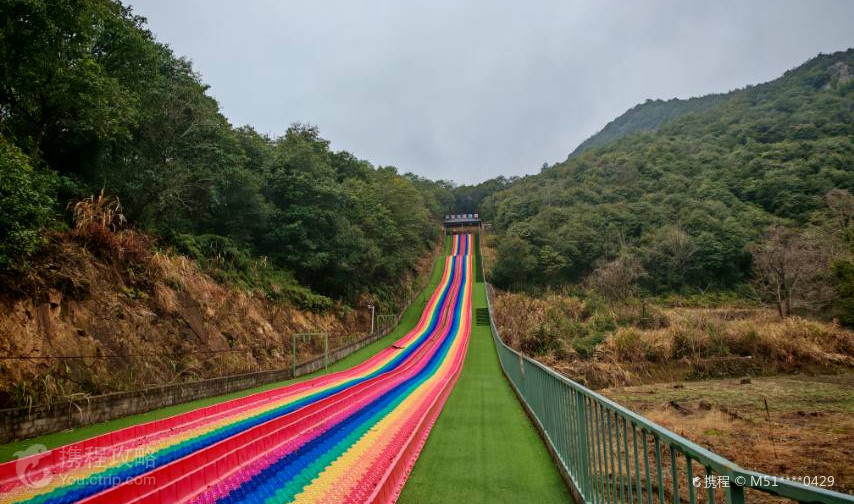 象山龙角岩森林公园内有玻璃栈道和彩虹滑道,其中,玻璃栈道周围树木茂盛、峰峦叠嶂,是拍照取景的好地方。