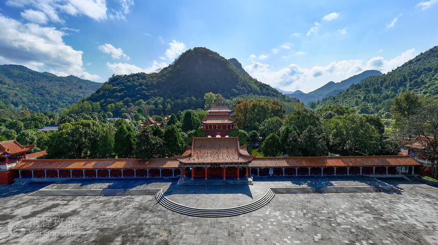 九嶷山景区,位于永州市宁远县境内,宁远县城以南约30公里,中国古代传说,上古的舜帝就埋葬在山下,千百年来,历代名人骚客登临此地,为讴歌此地留下了大量诗文。秦汉以来,历代帝王或遥祭舜帝,或遣官代祭,留下了大量的圣迹仙踪和文物古迹。舜帝陵景区、宁远文庙、摩崖石刻等独特的人文景观吸引了海内外大批游客。 这里是湘江的发源地之一,山中树木茂盛,还有石枞、香杉、斑竹等植被,被誉为“九嶷三宝”,景区内还有河流、潭水点缀其间。景区内主要的景点有:舜帝陵景区、紫霞岩、舜帝庙考古遗址公园(玉馆岩)、娥皇峰。游客在游览景区时,可以购买景区的套票,也可以有选择的分别购买舜帝陵景区、紫霞岩、玉琯岩等单独景点的门票。 景区的舜帝陵景区,分为两个自然院落,九个单体建筑,从外入内有玉带桥,仪门、神道、山门、干门、拜殿、正殿、寝殿、左右厢房、左右碑房和碑廊,三面宫墙环绕。 舜源峰,是这片山区的主峰,相传因舜帝驾崩后葬于山脚下而得名。 景区内的永福寺,与古舜庙相伴,永福寺始建于南齐(479年),距今已有1500多年历史,与杭州的灵隐寺同时代;紫霞岩,位于舜帝陵景区以南约1公里的山腰处,是喀斯特地貌地下溶洞。洞内有精美的石钟乳,还有一条清澈的溪流穿过洞中,洞内空间庞大,可以容纳数千人。 位于舜源峰景区以约南2公里处的玉琯岩,也是一个石山溶洞,洞口壁额上有宋代李挺祖书“玉琯岩”三字。右壁刻有宋道州刺史方信孺所书“九嶷山”三个大字,旁边刻有汉蔡邕的《九嶷山铭》,洞壁还有历代名人的题字和诗文,遍布于玉琯岩周围的摩崖之上,形成了一定规模的诗海碑林。